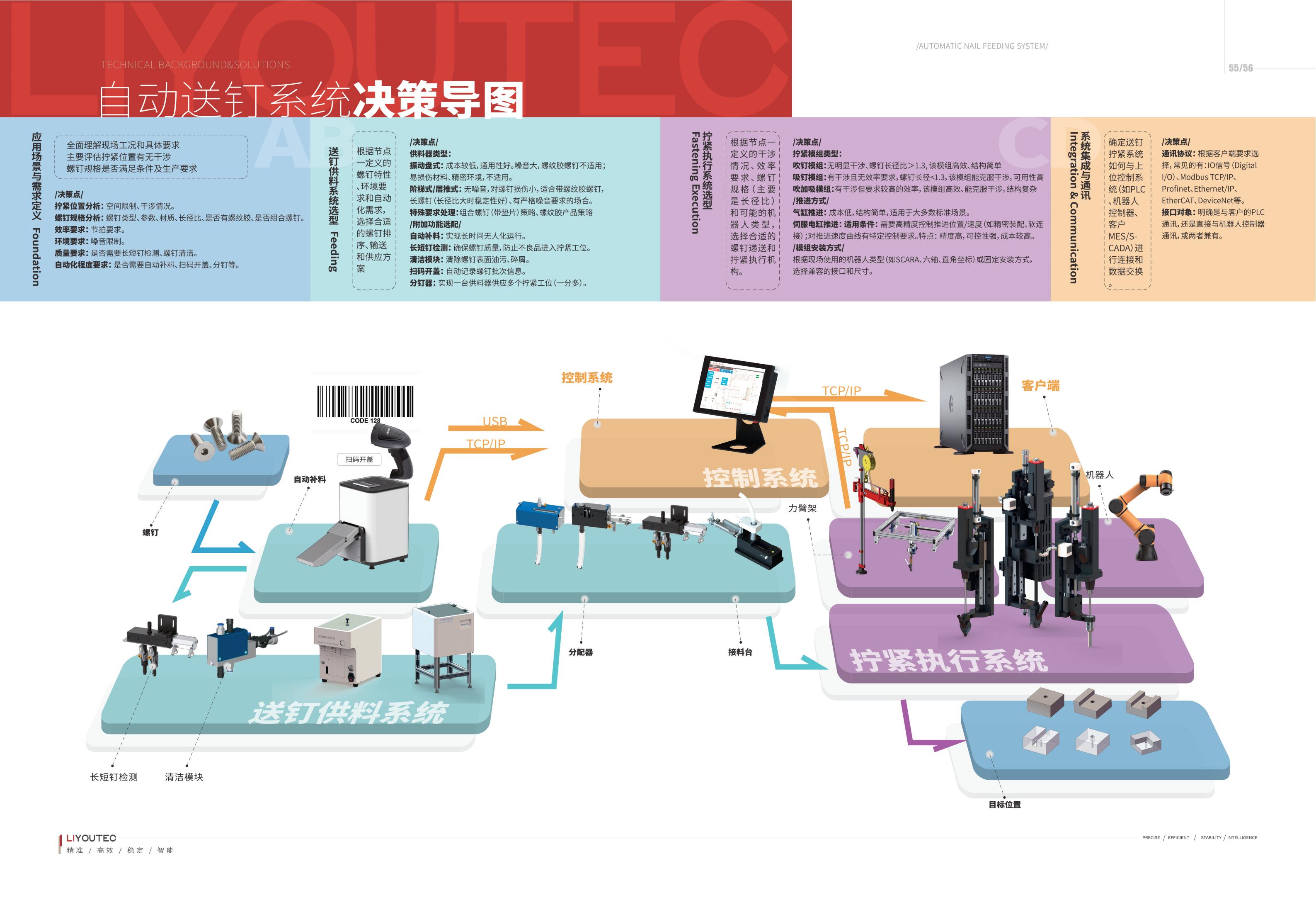 力优以传感器式智能拧紧工具作为核心系列产品的同时,可以为客户提供精密装配整提解决方案。力优拧紧模组及螺钉供料系统系列产品,可以帮助客户完成一站式自动化/半自动化锁付方案。更重要的是,我们致力于为客户提供更具性价比的整体解决方案,帮助客户更快实现商业成功。