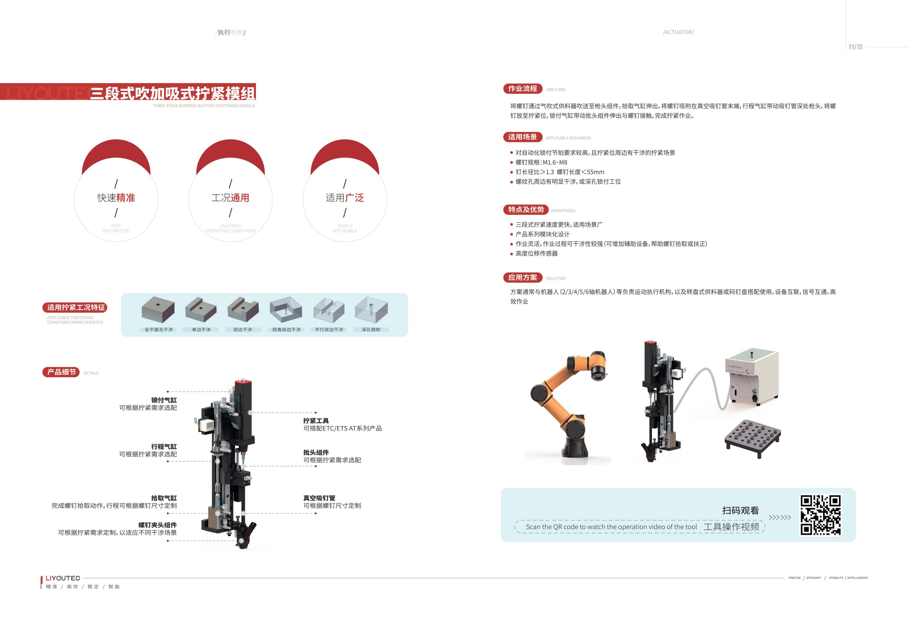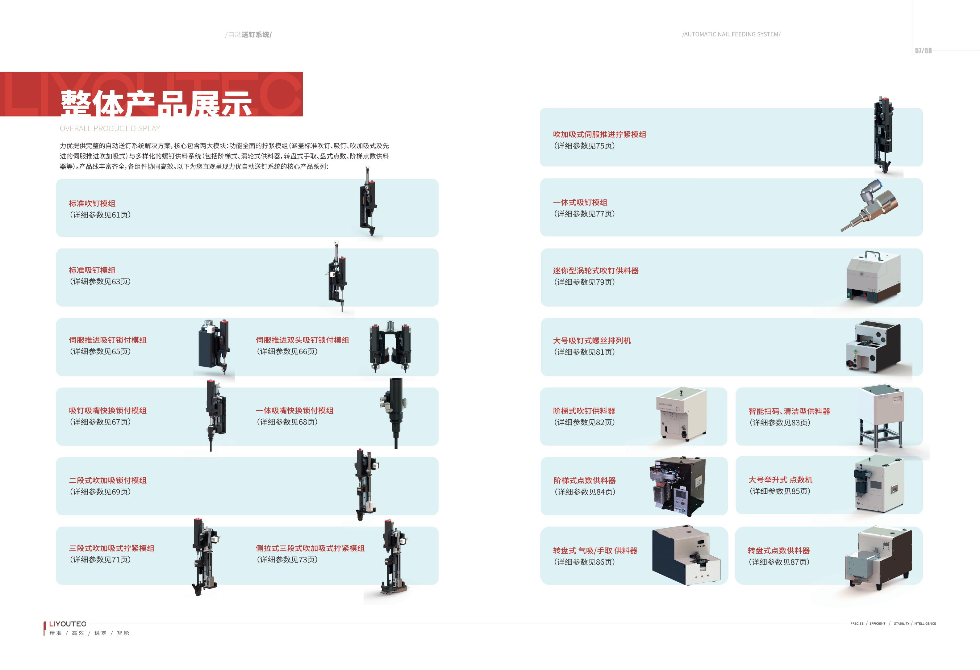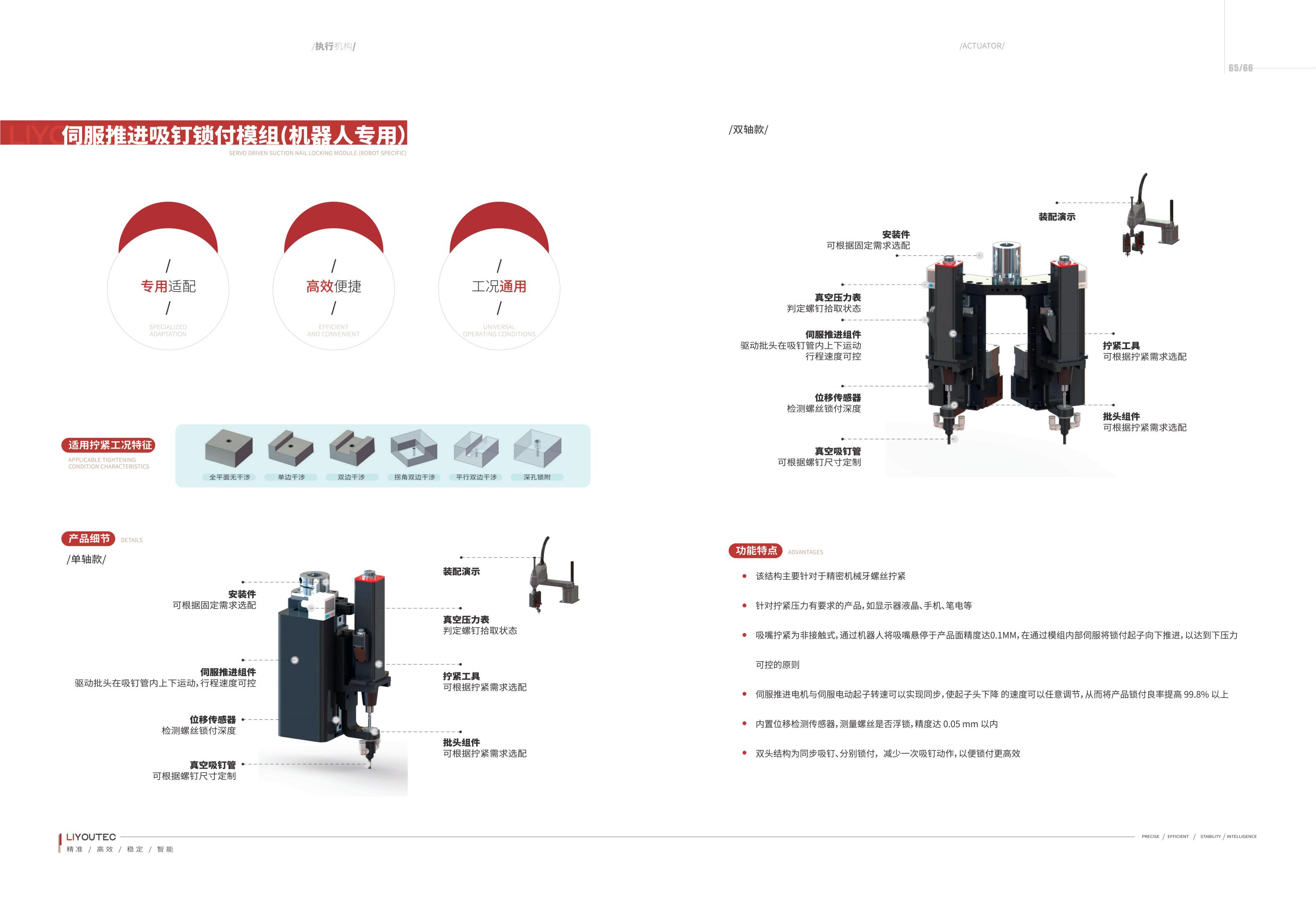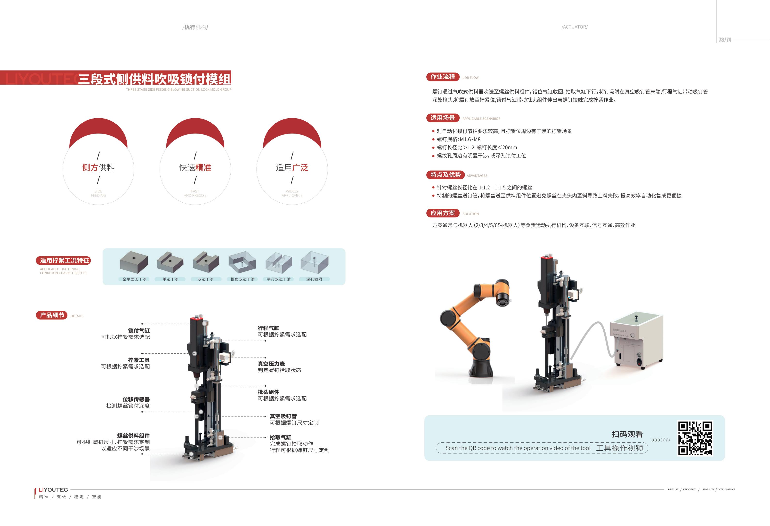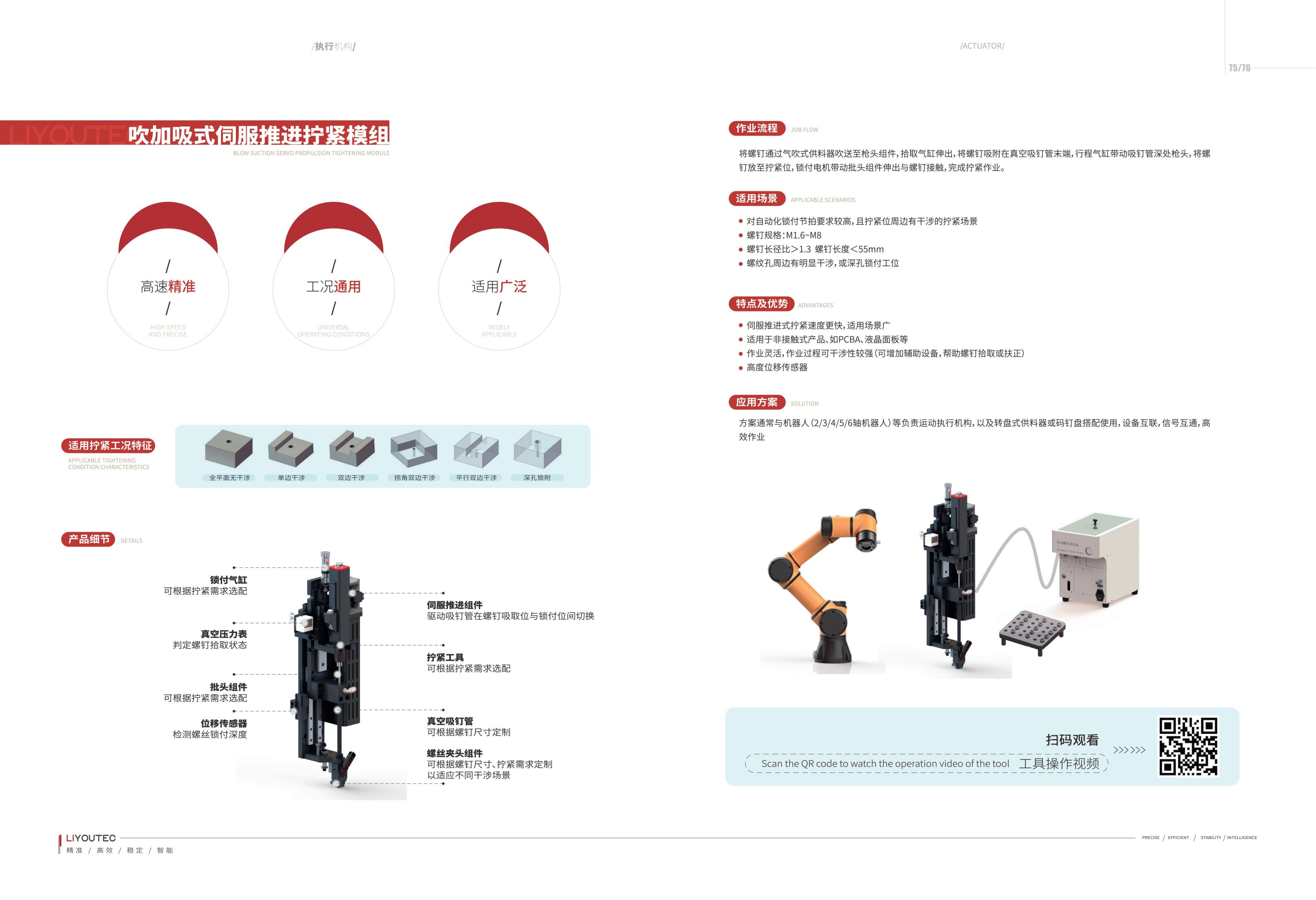 力优以传感器式智能拧紧工具作为核心系列产品的同时,可以为客户提供精密装配整提解决方案。力优拧紧模组及螺钉供料系统系列产品,可以帮助客户完成一站式自动化/半自动化锁付方案。更重要的是,我们致力于为客户提供更具性价比的整体解决方案,帮助客户更快实现商业成功。