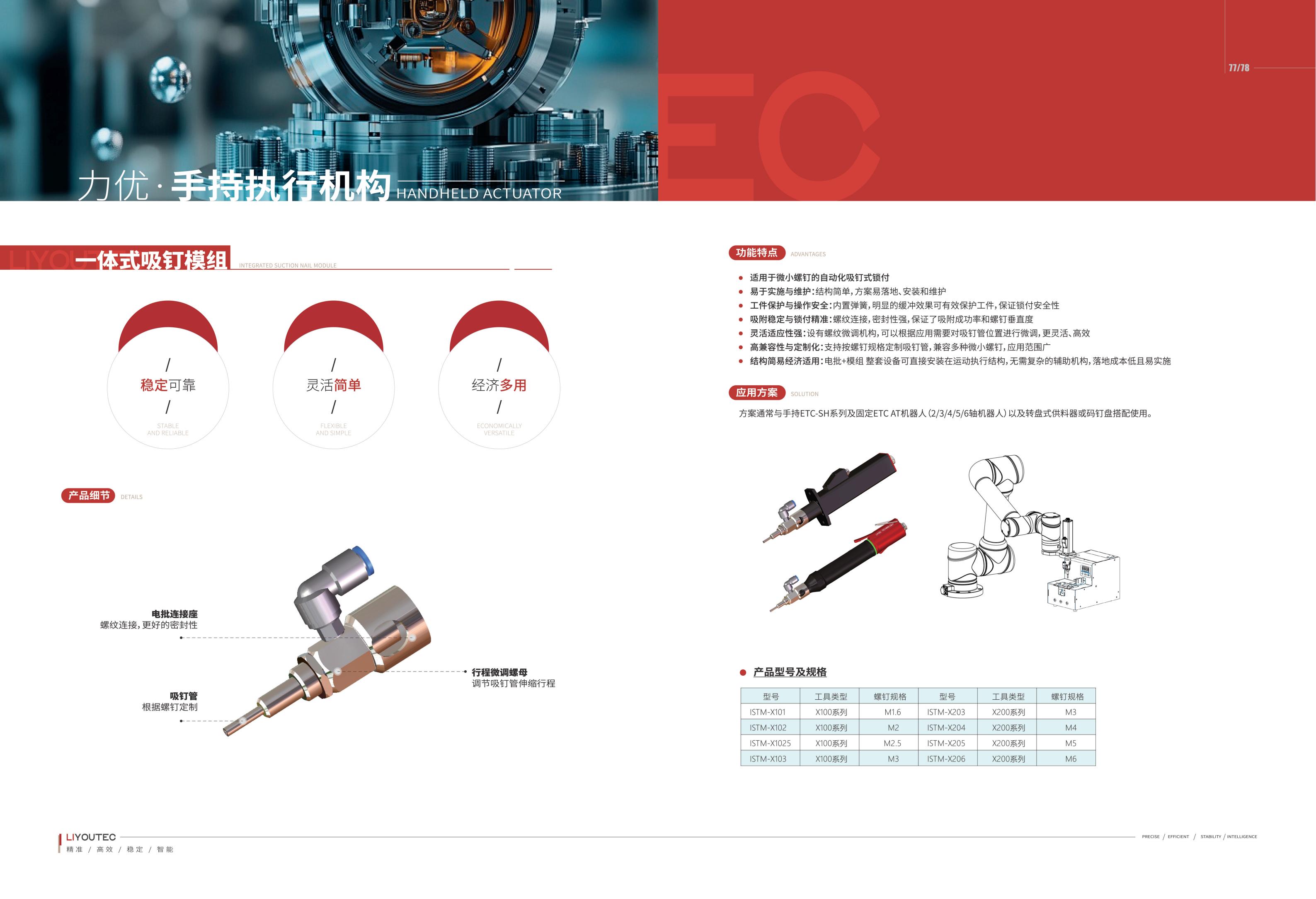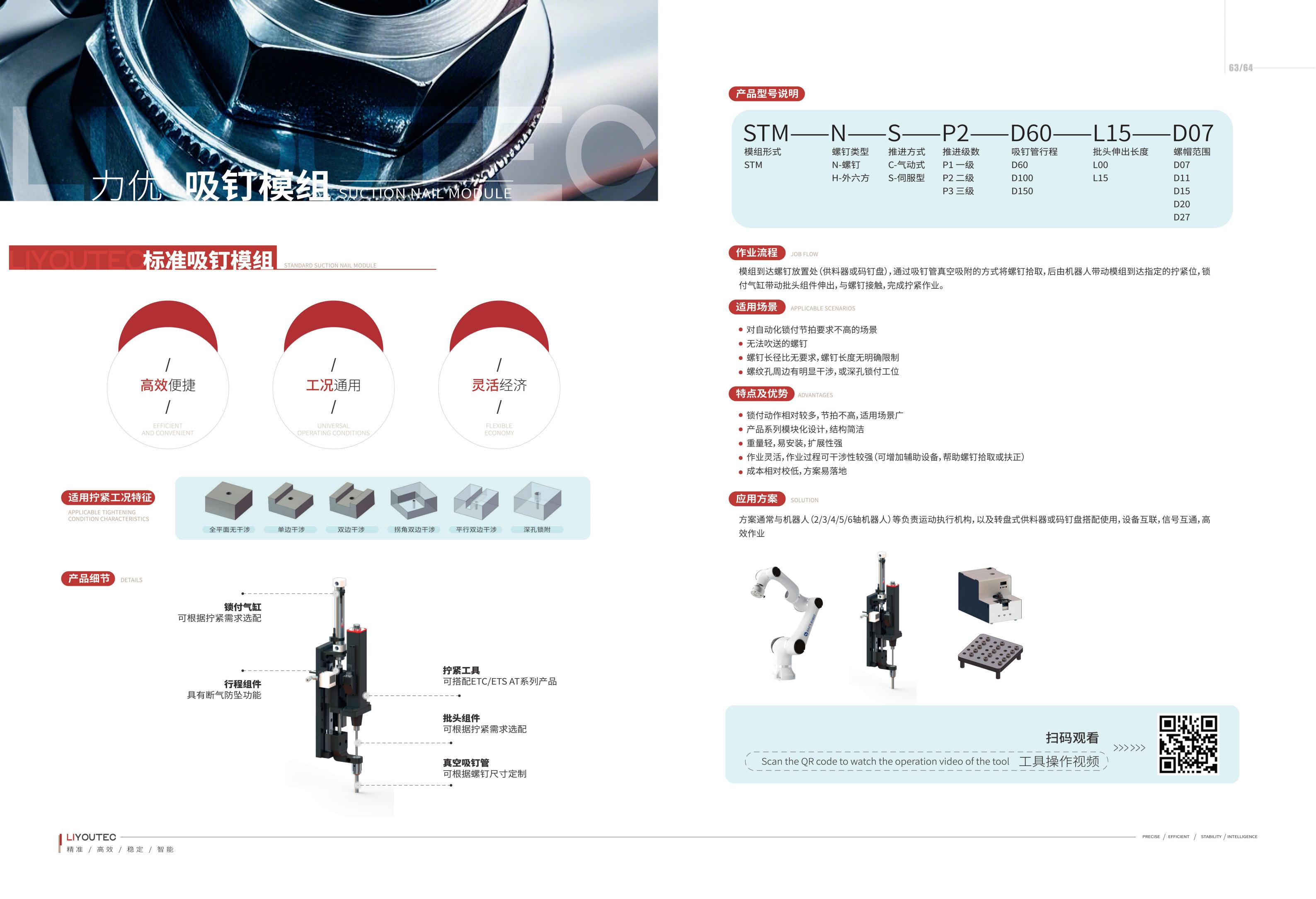 力优以传感器式智能拧紧工具作为核心系列产品的同时,可以为客户提供精密装配整提解决方案。力优拧紧模组及螺钉供料系统系列产品,可以帮助客户完成一站式自动化/半自动化锁付方案。更重要的是,我们致力于为客户提供更具性价比的整体解决方案,帮助客户更快实现商业成功。