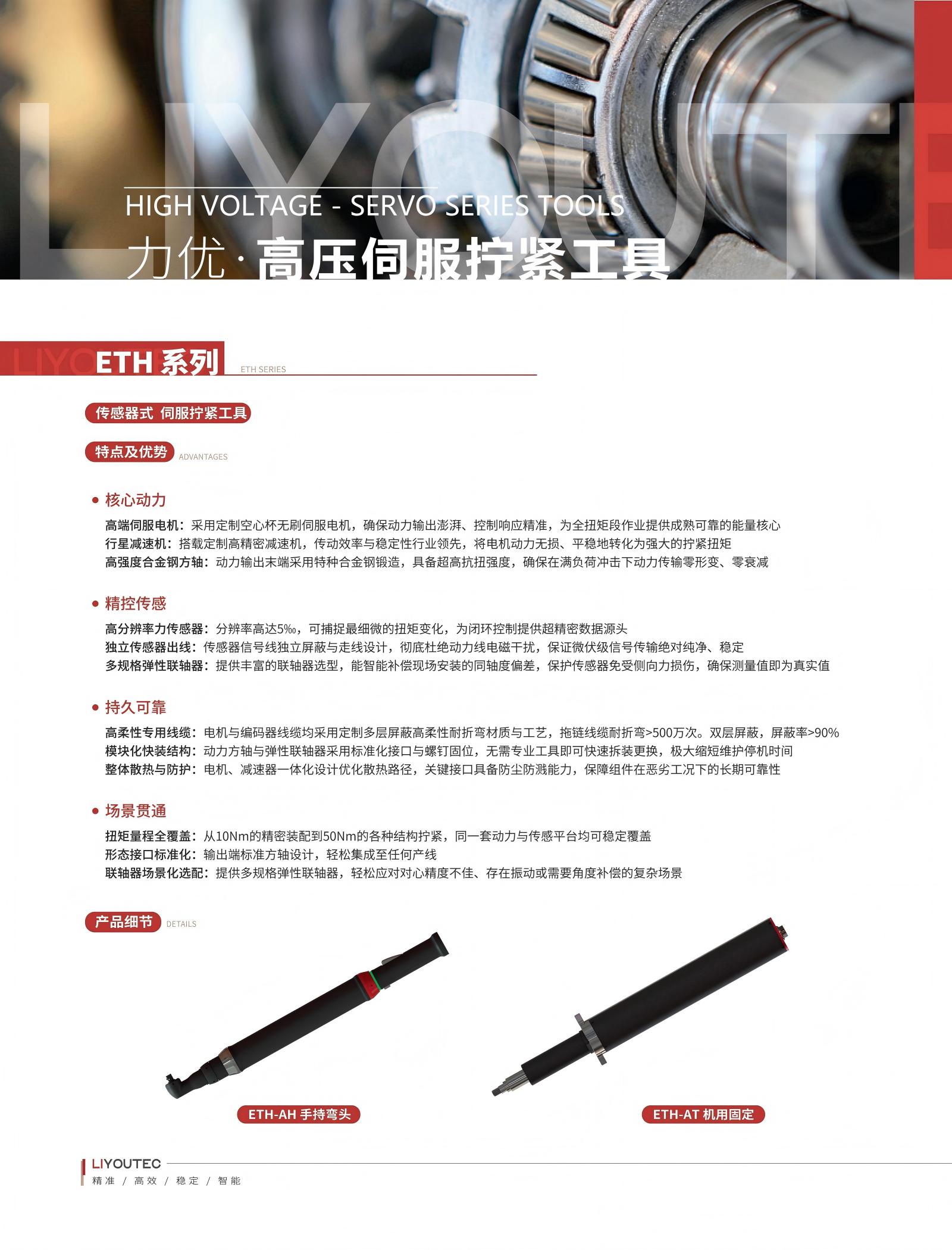 力优高压伺服拧紧工具,集成高性能伺服电机与行星减速机,动力强劲、控制精准。内置高分辨率传感器,确保拧紧过程稳定可靠。其模块化设计坚固耐用,维护便捷,并能通过标准接口与丰富配件,灵活适配从精密电子到工业制造的多种高要求拧紧场景。
